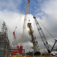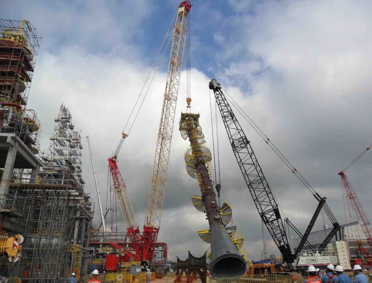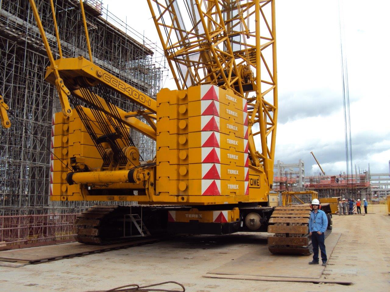 Alquiler de equipos para servicios de izamiento y movimiento de carga, con suministro de operadores, equipo de mantenimiento y 36 grúas con capacidad de 18 a 550 toneladas.